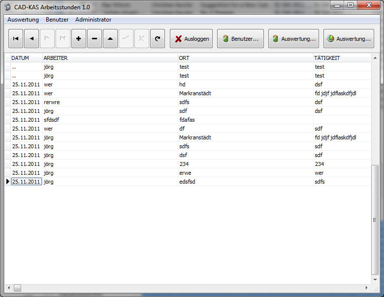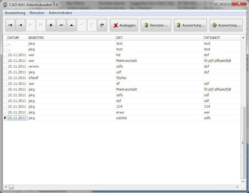 Die Arbeitsstunden können in dem Programm nach Mitarbeiter, Ort/Baustelle/Kunde, Tätigkeit, Datum und Zeit erfasst werden.