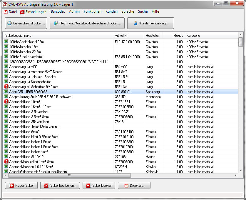 Dies ist eine abgespeckte Version unserer Lagerverwaltung. Wenn Sie mehr Funktionen benötigen, schauen Sie sich unser Lagerverwaltungsprogramm an. Wenn Sie weniger Funktionen benötigen, dann schauen Sie sich einmal unseren Rechnungs-Drucker oder unsere Kundenverwaltung an.