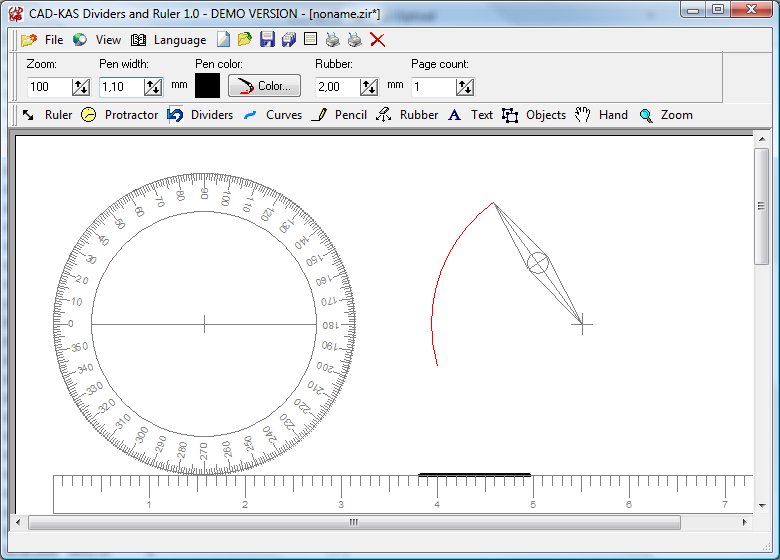 Draw with dividers, ruler, protractor, pencil and rubber on the screen as you would do it on a sheet of paper.