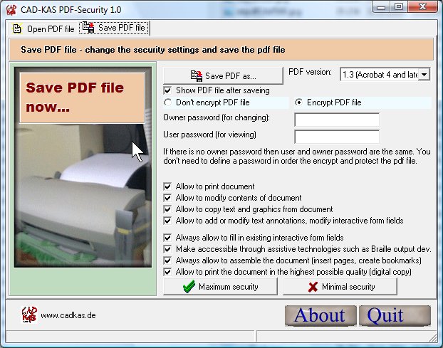 Protect PDF files against unauthorized access and encrypt them! The program limits