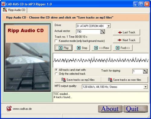 harddisk! Only one click and all tracks of the CD will be saved as mp3