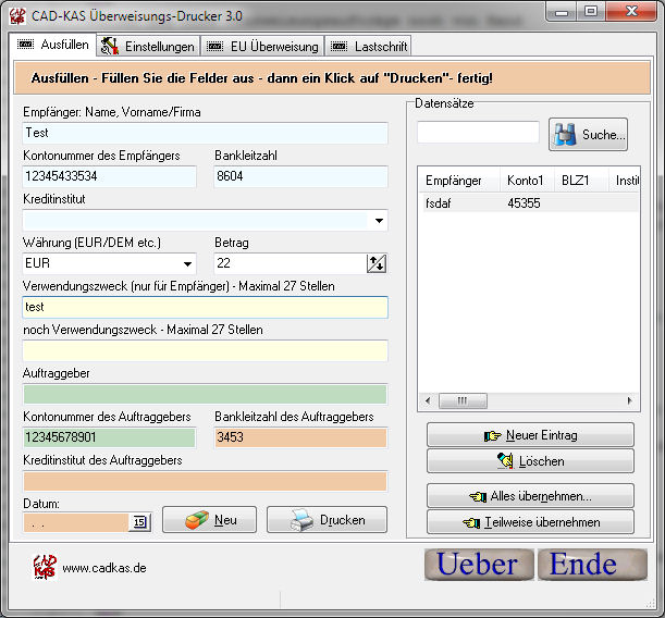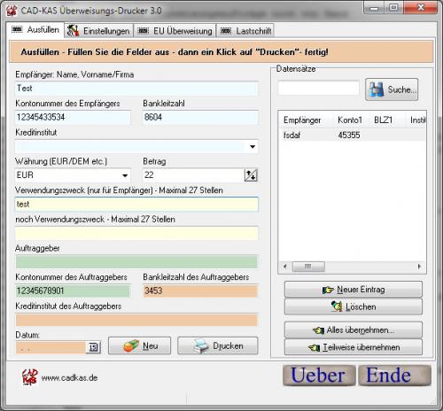 Sie können in Ihre Überweisungsformulare einfach mit Ihrem Drucker die Daten rein drucken,