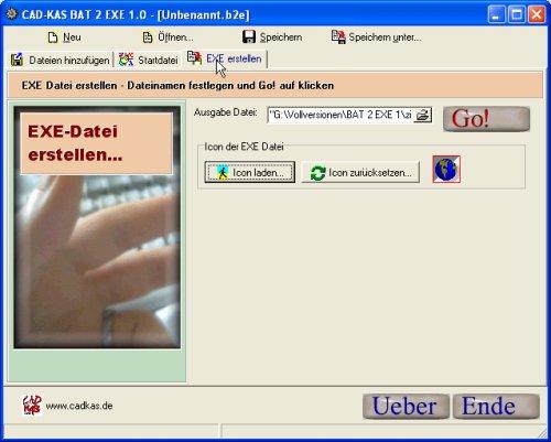 Erstellen Sie aus BAT Dateien (Batch-Stapelverarbeitungs-Dateien), ausführbare EXE Dateien. Sie können so den Quellcode gegen Veränderungen schützen und ein eigenes Icon für die EXE Datei auswählen. Ihr Script wirkt dadurch sehr professionell und lässt sich nicht mehr ohne weiteres von einem "normalen" Kommandozeilen EXE-Programm unterscheiden! Unverzichtbar, wenn Sie Ihre Scripte z.B. im Internet anbieten. Sie können auch alle von der BAT Datei sonst noch benötigten Dateien (oder auch andere benötigte BAT Dateien) alle in die gleiche EXE Datei packen, so wird aus vielen BAT, EXE, DLL Dateien usw. eine einzige ausführbare EXE Datei.