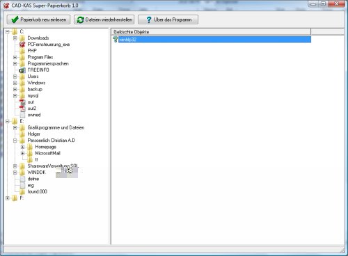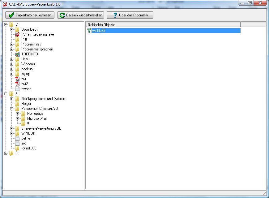 denn das Programm Super-Papierkorb stellt den Inhalt des Papierkorbs