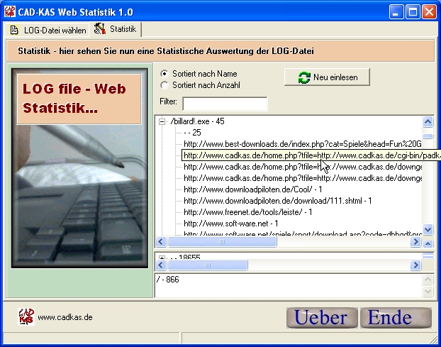 Web Statistik 1.0 - Auswertung der Besuche auf Ihrer Website über die Log Datei