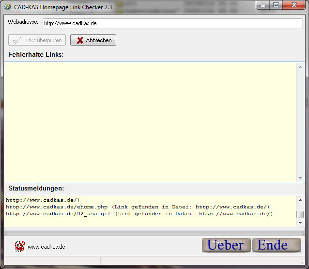 Das Programm durchsucht zunächst die erste Seite nach allen Links und prüft ob diese noch gültig sind. Links auf Unterseiten werden daraufhin verfolgt und auf den Unterseiten werden ebenfalls alle Links und alle Bilder auf Gültigkeit überprüft.