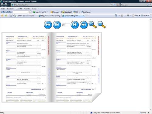 Flip pages example - plain HTML no Flash or something elseClick on the buttons to go to the next or the previous page. Or enter a page number and click on something outside of the edit field to jump to a page. Or simply click on the page to turn the page.